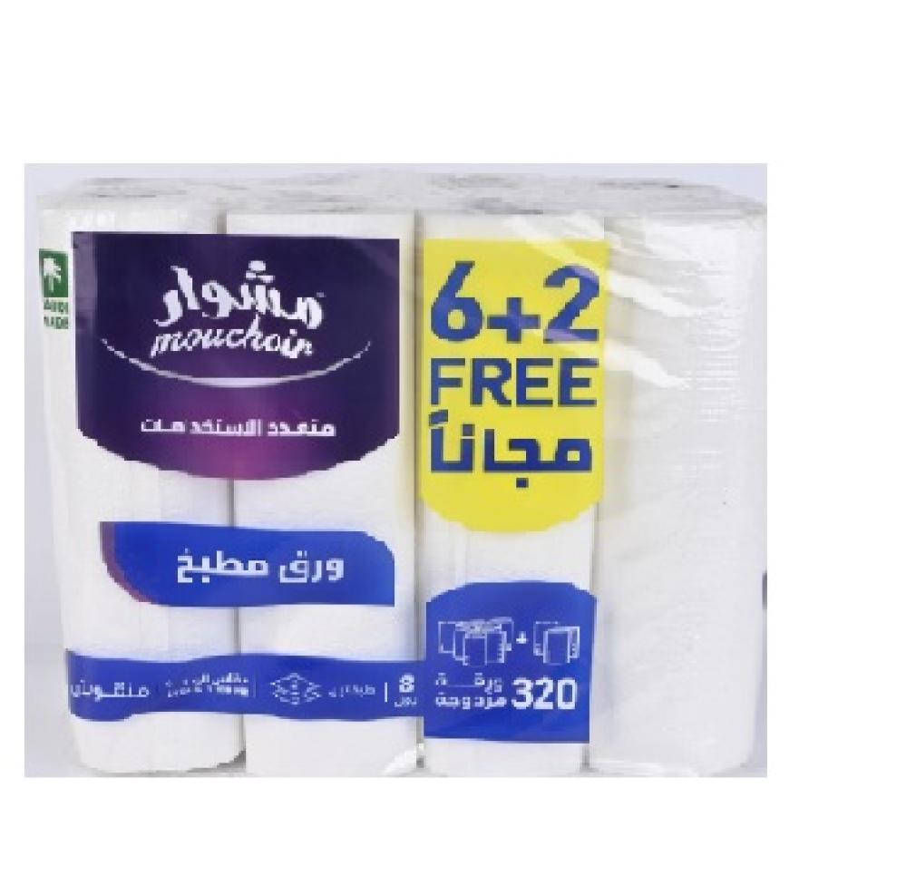 مناشف مطبخ رول من مشوار 8 رولات مقاس الورقة 280 * 200 مم